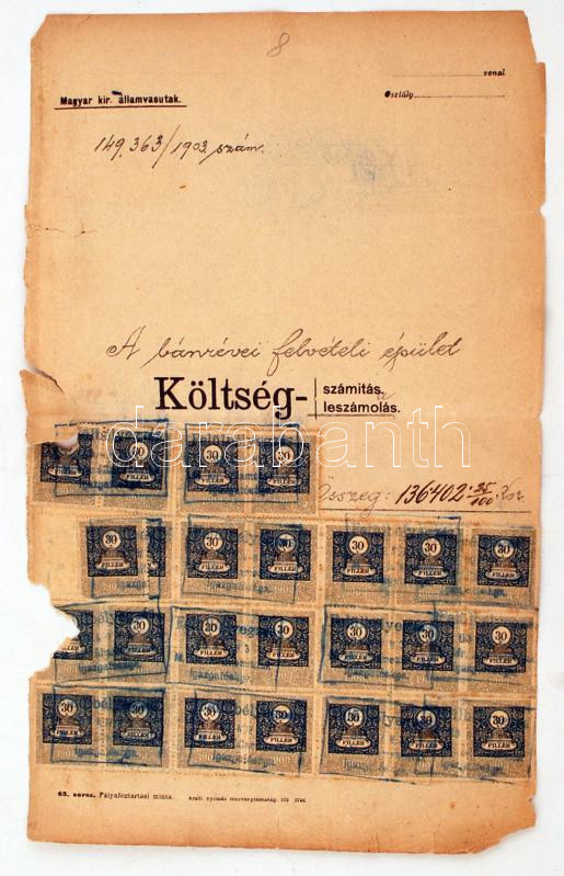 https://www.darabanth.com/en/262-Online-auction/262.0/Other-collectibles/Document-Stamps~19/1903-Koltseg-leszamitolas-24x30f-illetekbelyeg-lerovassal~II1258484