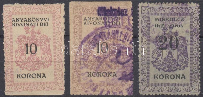 1920-1922 3 db Miskolc városi illetékbélyeg (~16.000)
