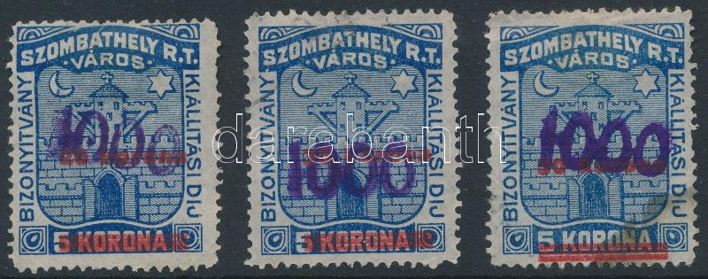 1922 Szombathely városi illetékbélyeg 1000K/20K, 1000K/30K, 1000K/50K ...
