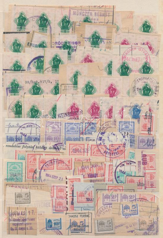 1934-1941 100 db okirat illetékbélyeg kivágásokon berakólapon