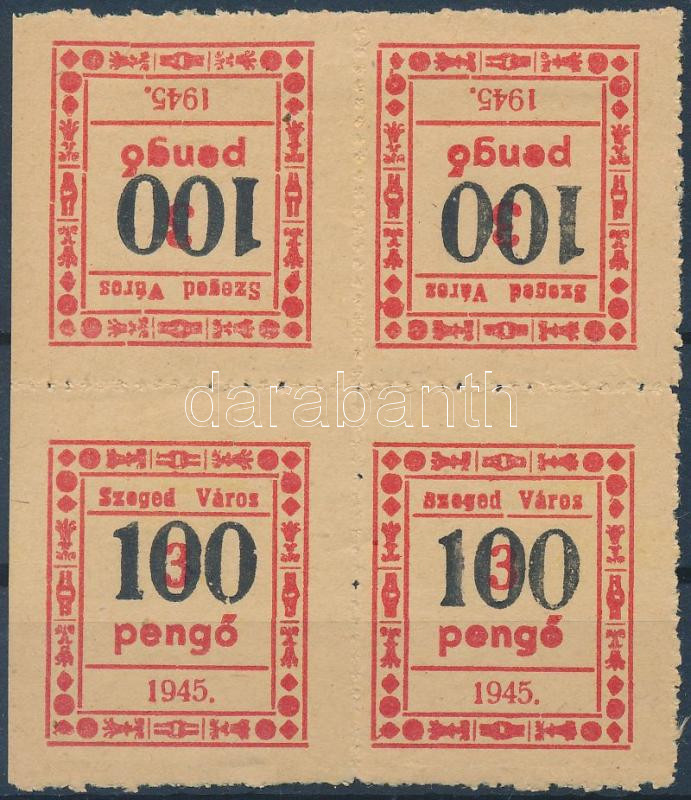 1945 Szeged városi illeték 10P/3P négyestömb fordított párokkal