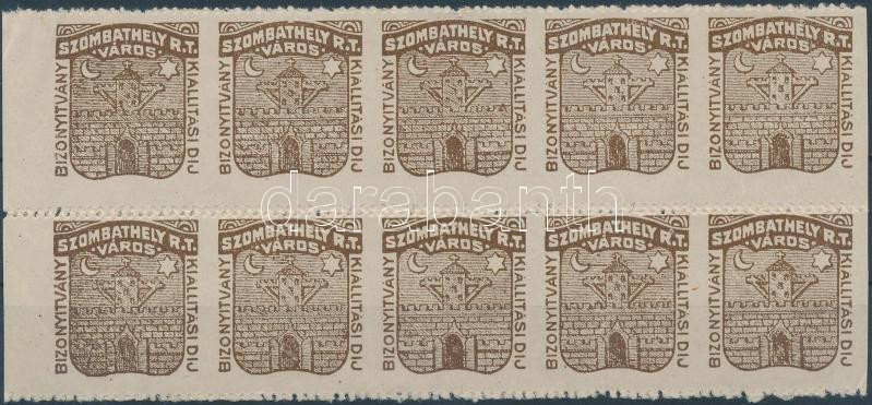 1946 Szombathely városi illetékbélyeg értékjelzés nélkül 10-es tömbben...