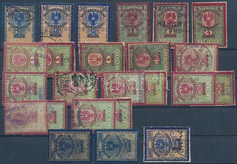 Osztrák illeték 24 db (19 klf érték) okmánybélyeg