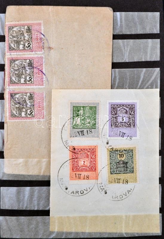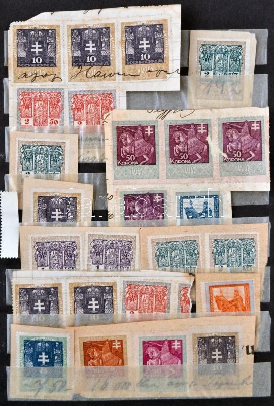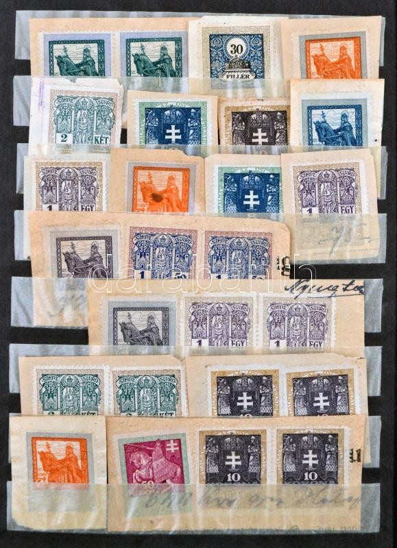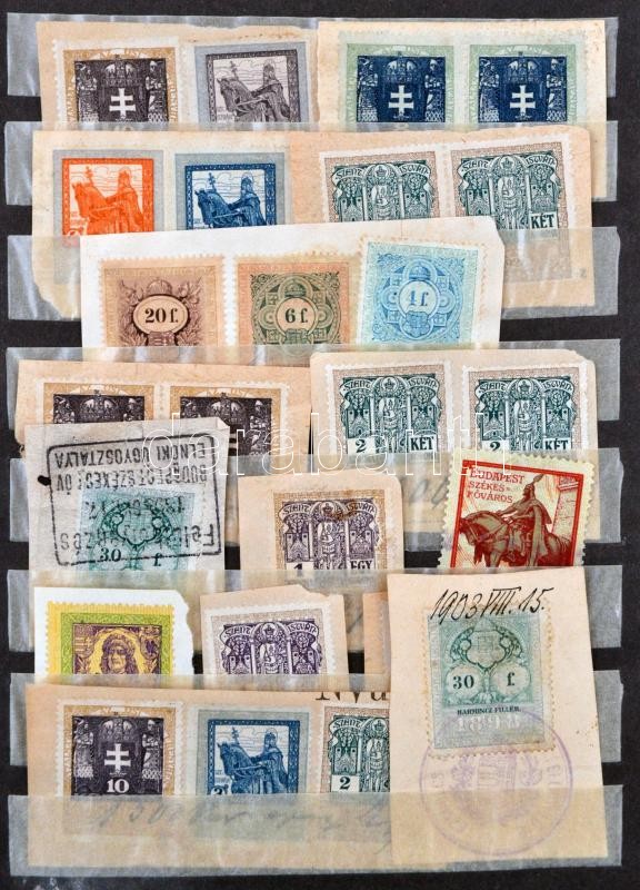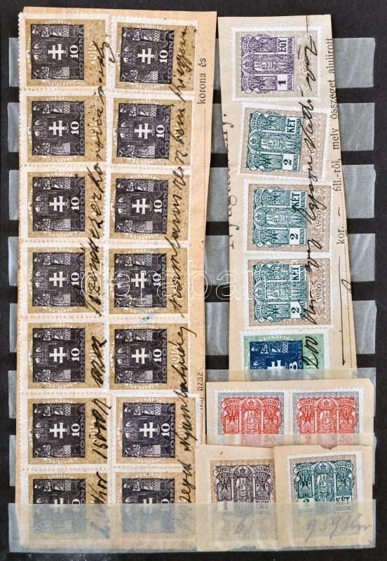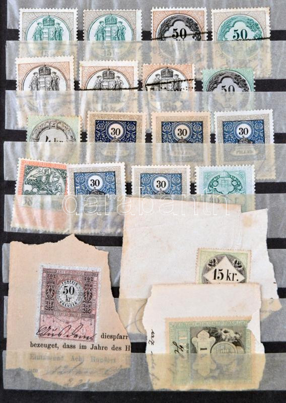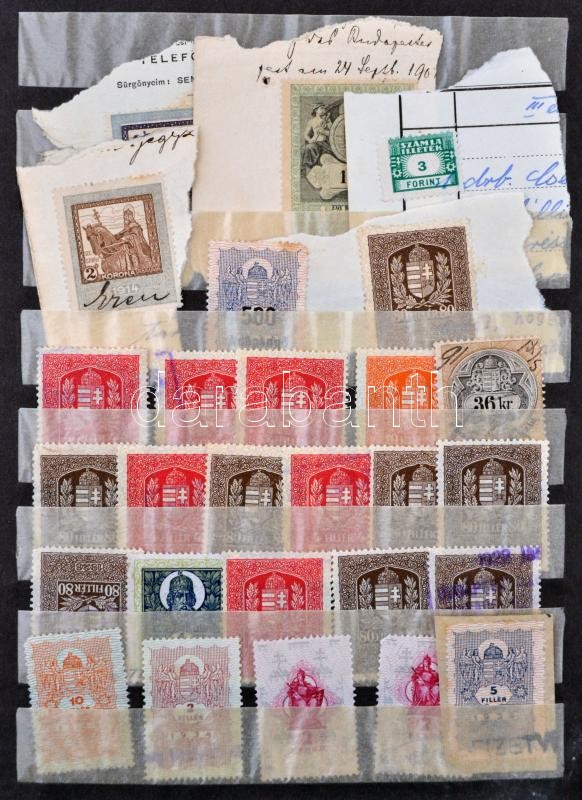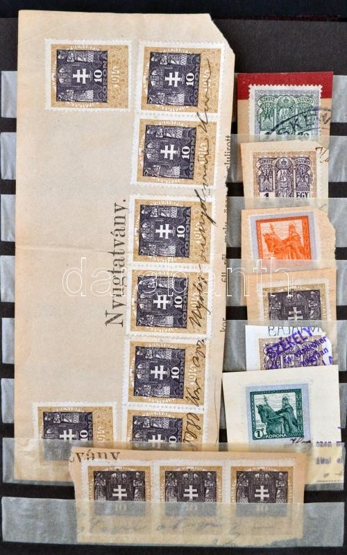 Több, mint 100 db vegyes okmánybélyeg, főleg kivágásokon 6 lapos közep...