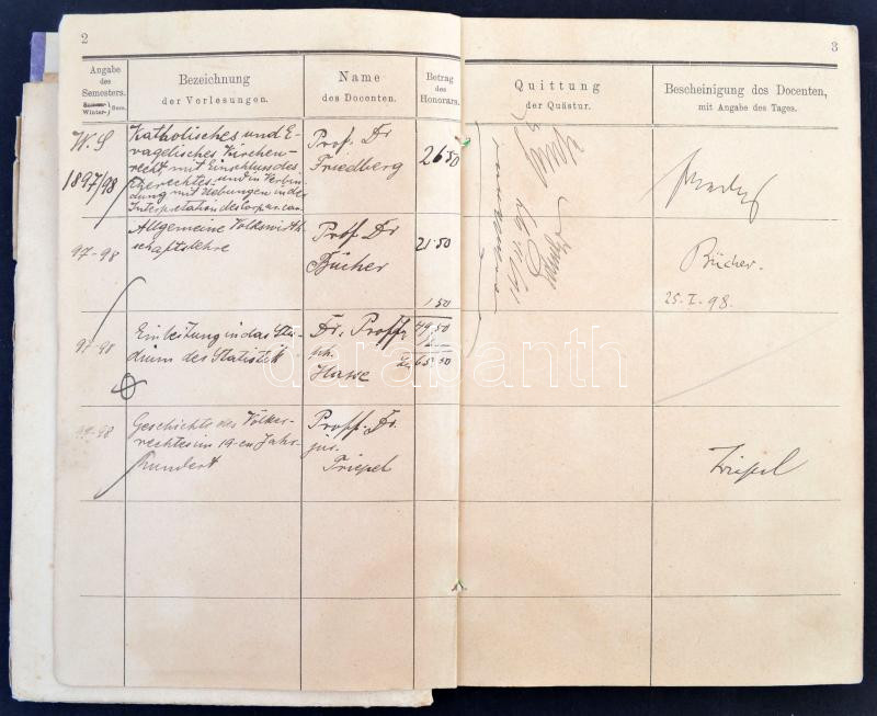 Description: 1896 Tarányi Ferenc későbbi táblabíró lipcsei jogi akadémiai indexe számos híres jogász tanár aláírásával, hozzá szigorlati bizonyítványok / Law academy of Leipzig Index with signatures