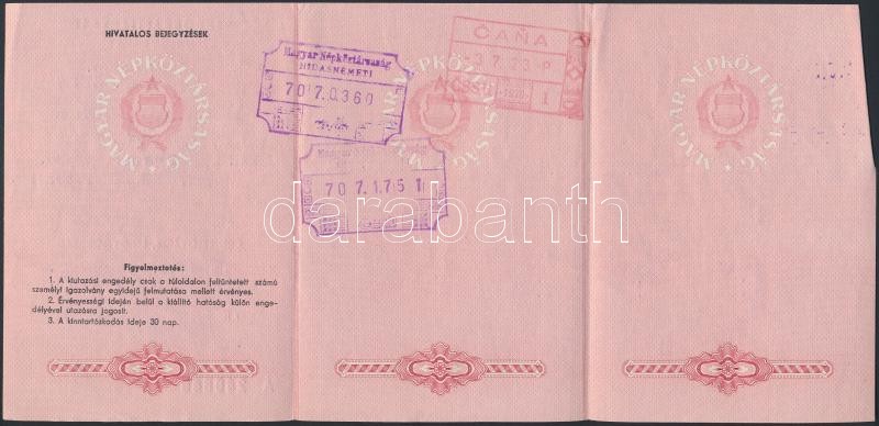 https://www.darabanth.com/en/262-Online-auction/262.0/Other-collectibles/Documents~36/1970-Kiutazasi-engedely-utlevellap-Csehszlovakia-es-Lengyelorszag-teruletere-12x24cm~II1298392