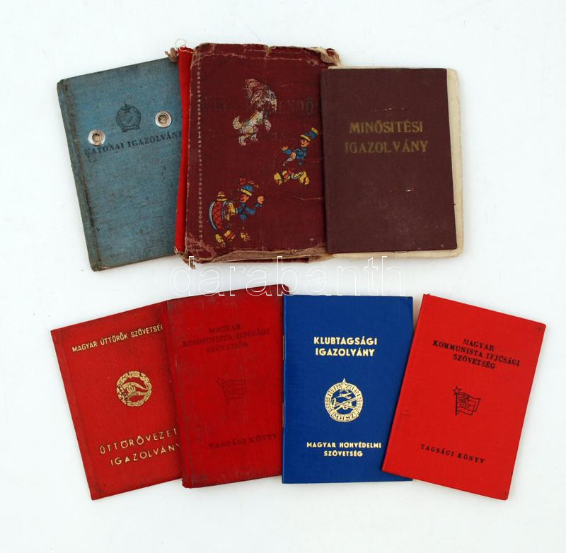 https://www.darabanth.com/en/262-Online-auction/262.0/Other-collectibles/Documents~36/cca-1950-1977-Vegyes-igazolvanyok-katonakonyv-a-Rakosi-erabol-KISZ-igazolvanyok-uttoro-~II1304598