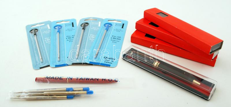 5 db golyóstoll eredeti csomagolásában, hozzá 9 db különféle tollbetét...