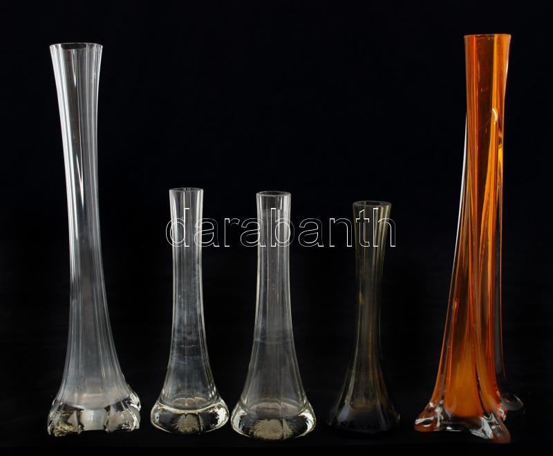 5 db különféle üvegváza, kisebb lepattanásokkal.