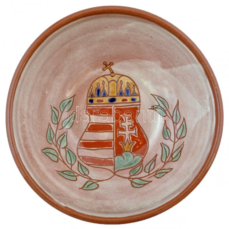 Címeres mázas kerámia tál, d:17 cm, m:6 cm