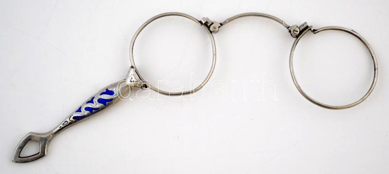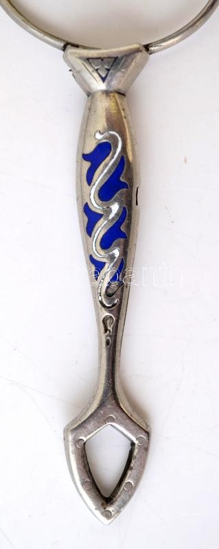 Díszes, zománc berakásos fém lornyon, hiányos, h: 11 cm