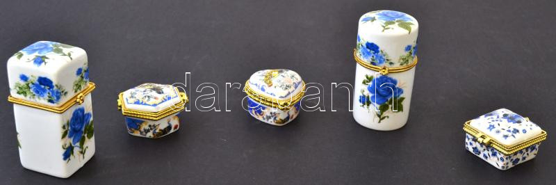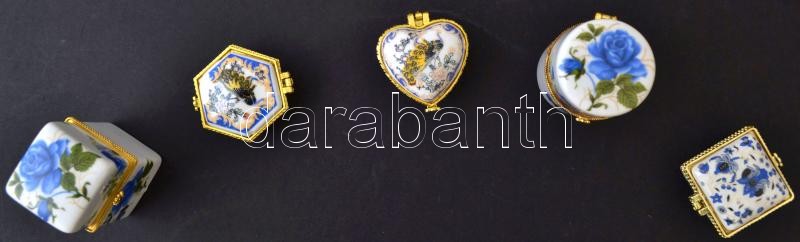 Ékszertartó porcelán dobozkák, matricásak, hibátlanok, 5 db, 5x4 cm