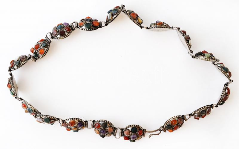 Féldrágakövekkel gazdagon kirakott fém öv, h: 74 cm