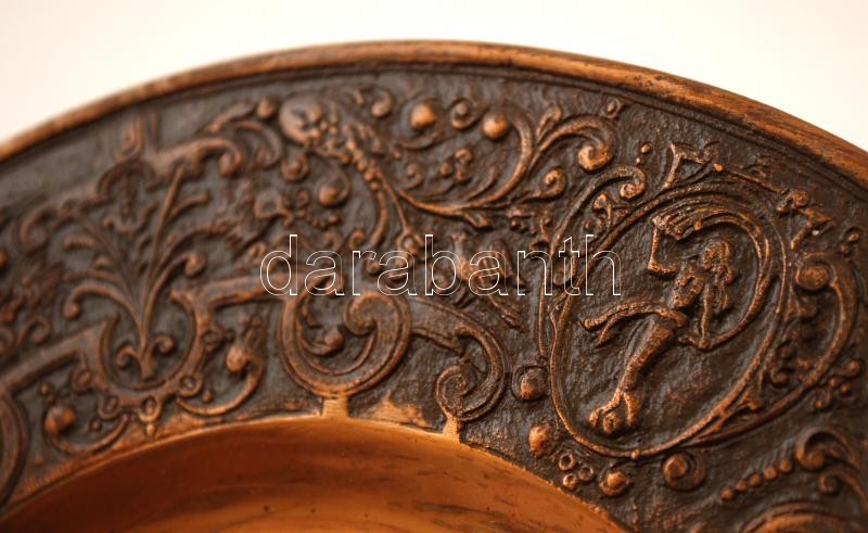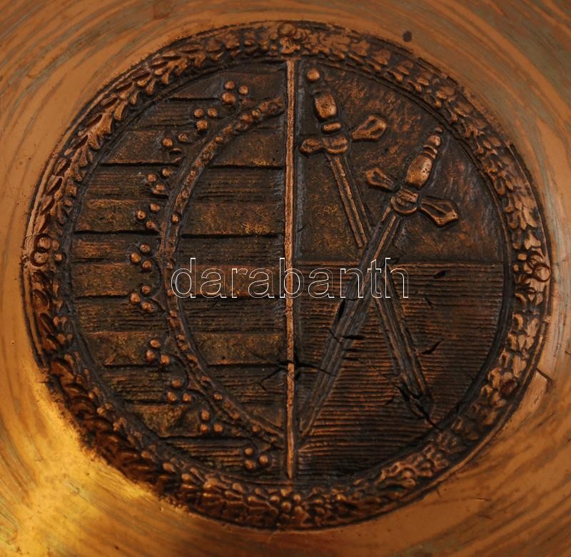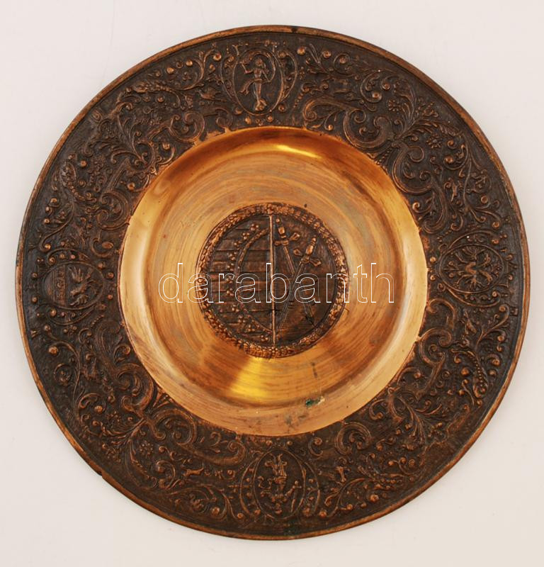 Gazdagon díszített címeres réz falitál, d: 21,5 cm