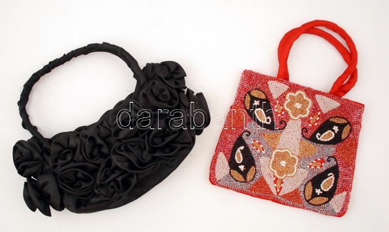 Gyönggyel kirakott és selyem táskák, 2db, 30x16cm, 20x24cm