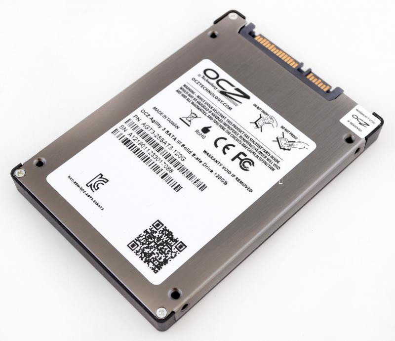 OCZ Agility3 120 GB SATA III 2.5" használt SSD lemez. Max. olvasási sebesség: 525MB/s, Max. írási sebesség: 500 MB/s