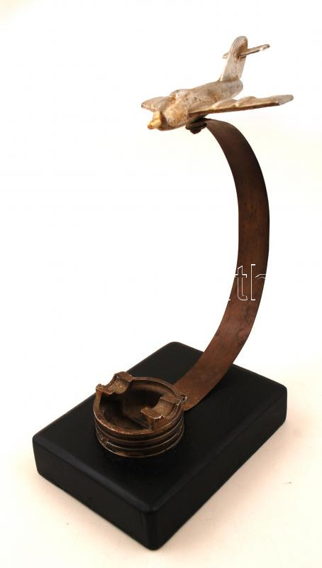 Régi fém asztali hamuzó mozgatható repülővel, m: 22 cm