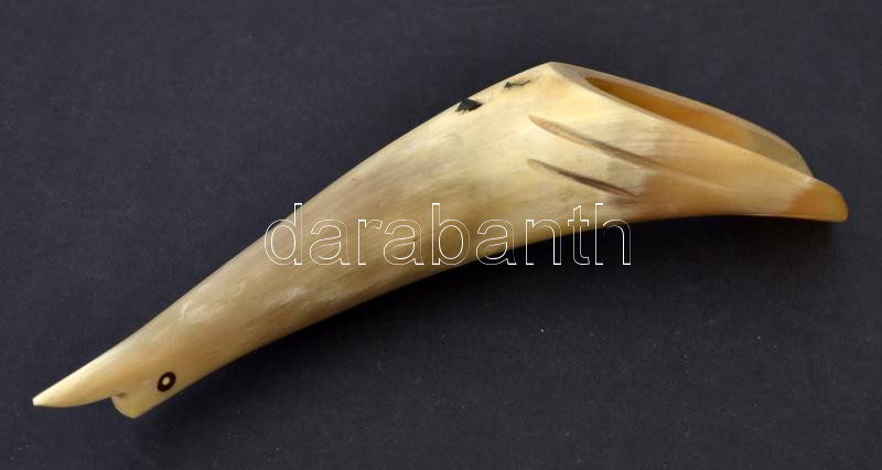 Szaruból készült, madarat formázó asztali dísz, kis sérüléssel, h: 23 cm