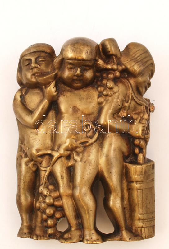 Szüreti jelenetet ábrázoló szecessziós stílusú fali lámpatest, bronz, jelzés nélkül, csatlakozó nélkül, m: 17,5 cm