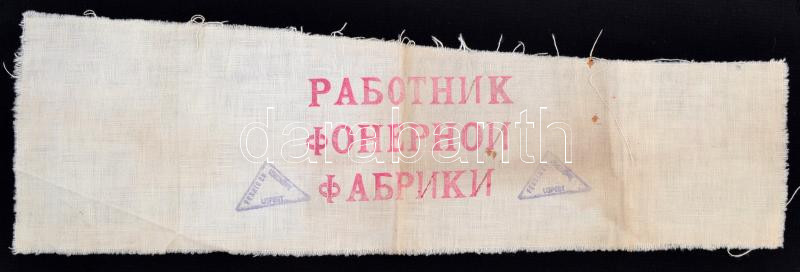 Újpesti Furnér- és Lemezművek Rt. gyárőrségi karszalagja.
