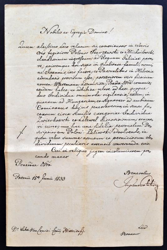 1833 József nádor saját kézzel aláírt levele Larczibányi Lőrinc nyitra...