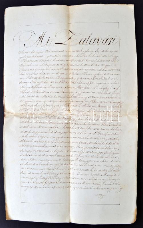 1842 A Zalavári Szent Adorján gyülekezet részére történt örökségrendelés dokumentálása, a rend pecsétjével ellátva 8 nagyalakú beírt oldal