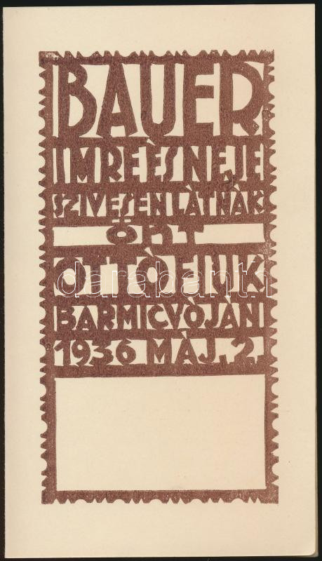 1936 Révész Kornél (1885-1944): Meghívó bár micvóra, alkalmi grafika, ...