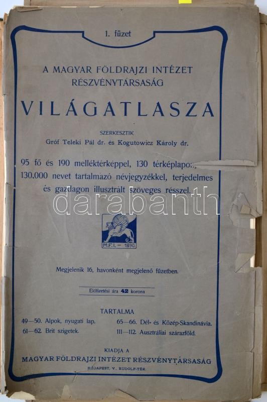 https://www.darabanth.com/en/262-Online-auction/262.0/Other-collectibles/Maps~18/cca-1910-Vilagatlasz-Szerk-grof-Teleki-Pal-Kogutowicz-Karoly-dr--41db-terkeppel-tobb-l~II1302841