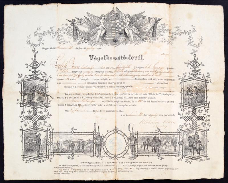 1893 Katonai végelbocsájtó levél, obsit, viszonylag jó állapotban / Au...