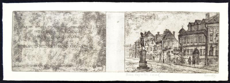 Élesdy István (1912-1987): Meghívó. Rézkarc, papír, jelzett, 11×17 c...
