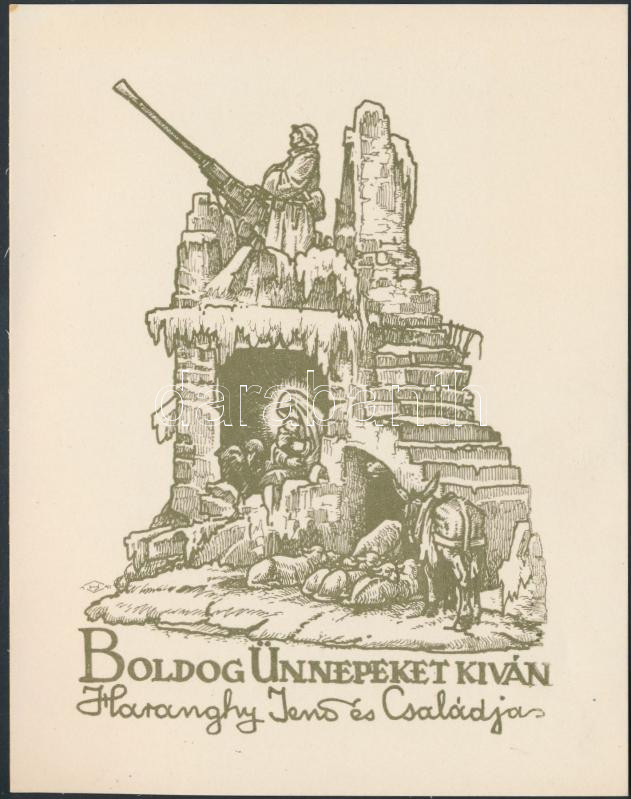 Haranghy Jenő (1894-1951): "Boldog ünnepeket kíván Haranghy Jenő és családja", klisé, 15x12cm