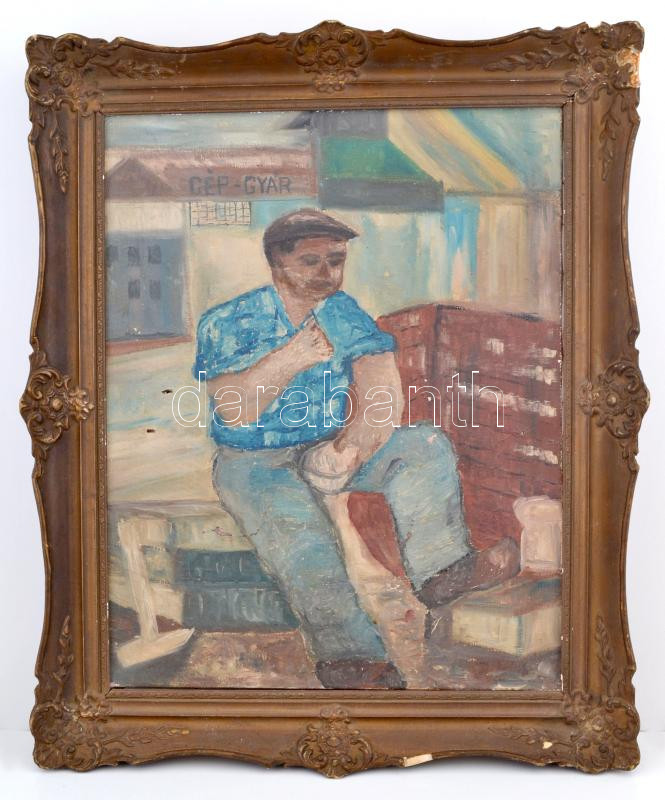 https://www.darabanth.com/en/262-Online-auction/262.0/Other-collectibles/Paintings-and-graphics~400051/Jelzes-nelkul-Falatozo-munkas-Olaj-vaszon-serult-keretben-50C39740-cm~II1265496