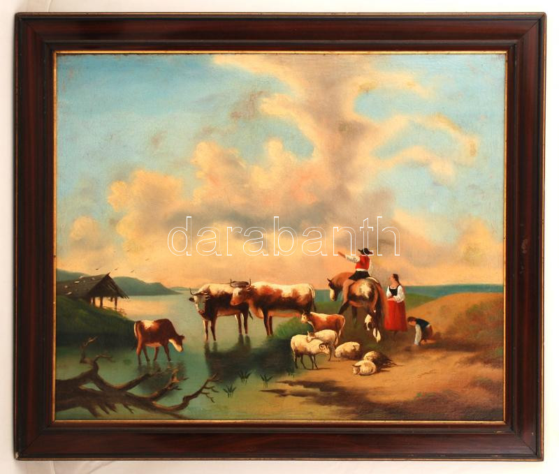Jelzés nélkül: Háziállatok a vízparton. Olaj, vászon, keretben, 55×68 ...