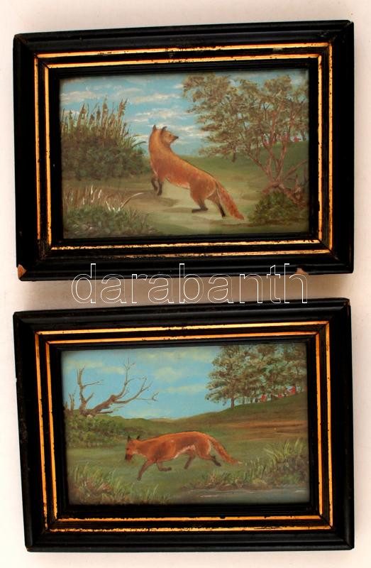 Jelzés nélkül: Rókavadászat I-II., olaj, farost, üvegezett fa keretben...