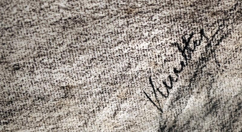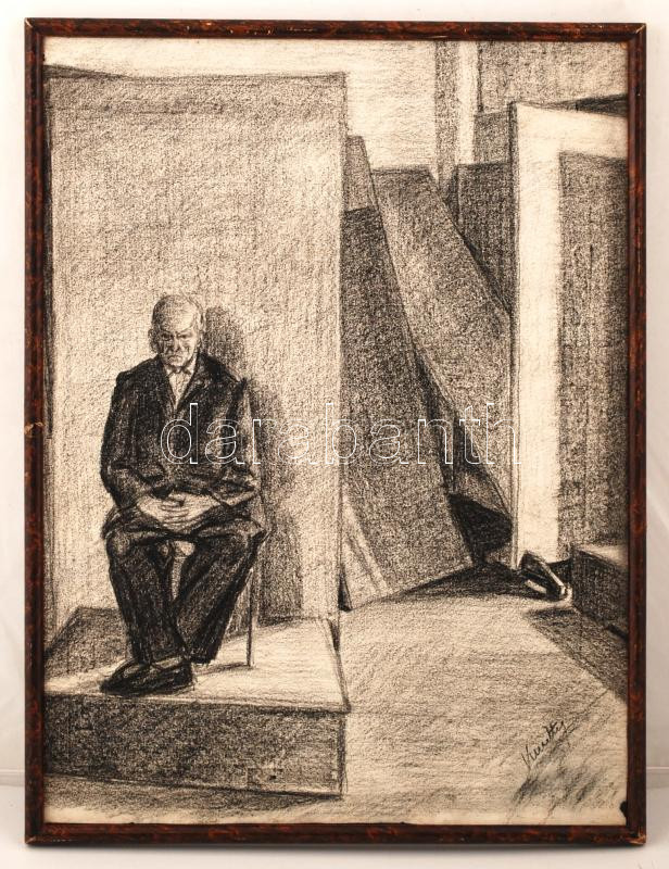 Kmetty jelzéssel: Öregúr, szén, papír, fa keretben, 56×41,5 cm
