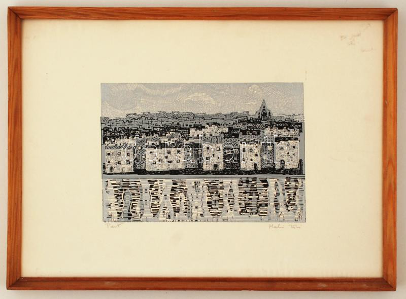 Olvashatatlan jelzéssel: Pest. Linó, papír, keretben, 21×30 cm