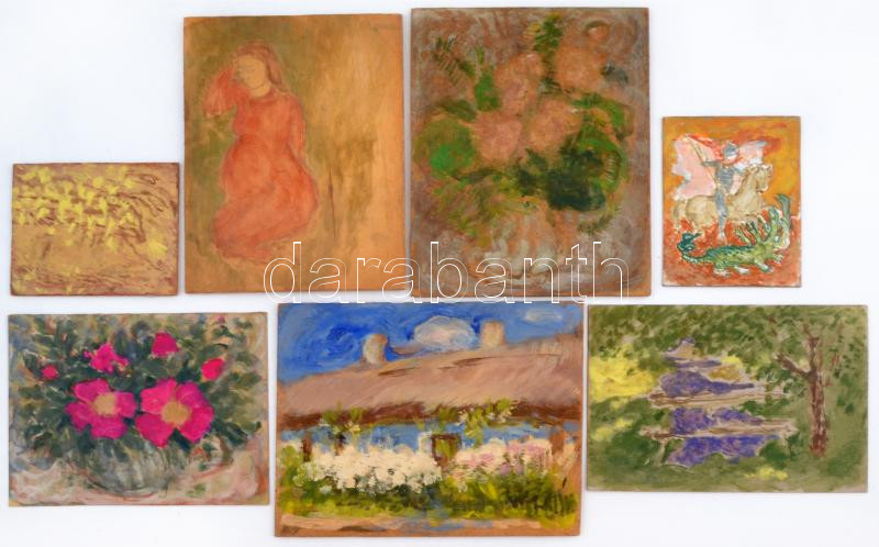Somlai Vilma (1938-2007): Kisméretű képek, 7 db. Olaj, karton vagy far...