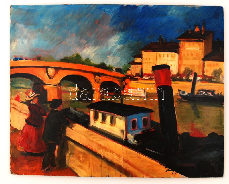 Ziffer jelzéssel: Gőzös a folyón, olaj, fa, sérült, 43×53,5 cm