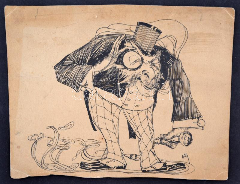 cca 1940 Gúnyrajz, grafika, HA jelzéssel. 14x11 cm.
