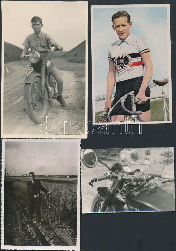 1930-40 Kerékpárversenyekkel, motorozással kapcsolatos kisméretű fényk...