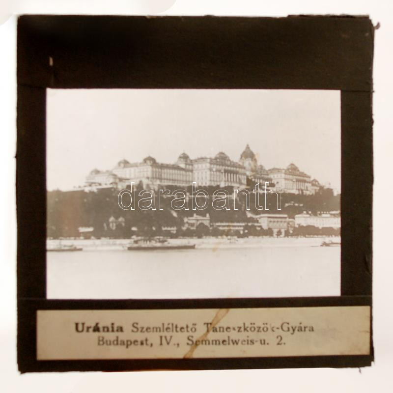 cca 1920 Budapest, királyi palota épület együttese, az Uránia Szemléltető- Taneszköz Gyárában készült vetíthető üveglemez diapozitív kép, 8x8 cm