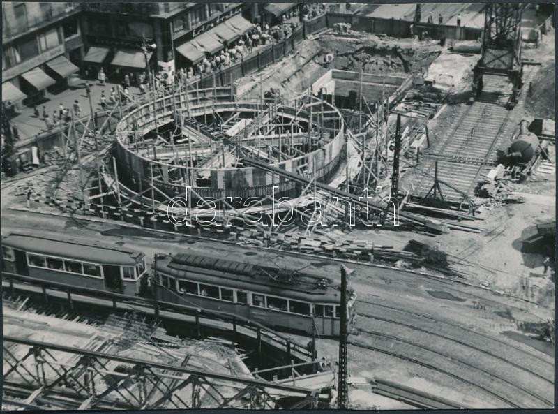 cca 1968 Budapest, Astoria metróállomás felszíni építkezése, Karai Sándor felvétele, 9x12 cm