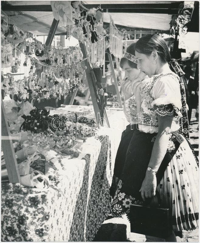 cca 1970 Magyar lányok népviseletben a vásárban. A Magyar Hírek fotója...