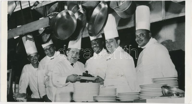 cca 1970 Vendéglátósok. Latzi Wittenberg. New York. A Magyar Hírek fotója, hátoldalán pecséttel. 13,5x23,5 cm.