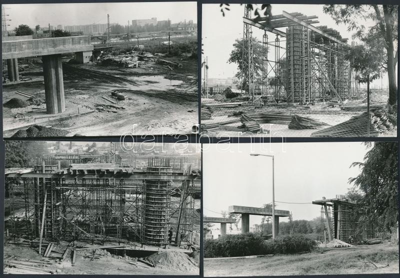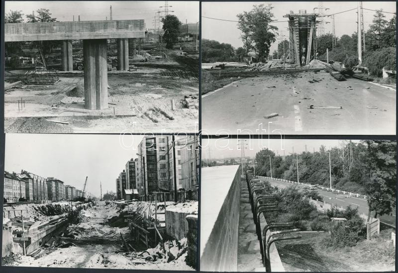 cca 1975 Budapest, Sibrik Miklós úti felüljáró építése, Karai S. felvételei, kettő feliratozva, 10 db helyszíni fotó, 9x13 cm