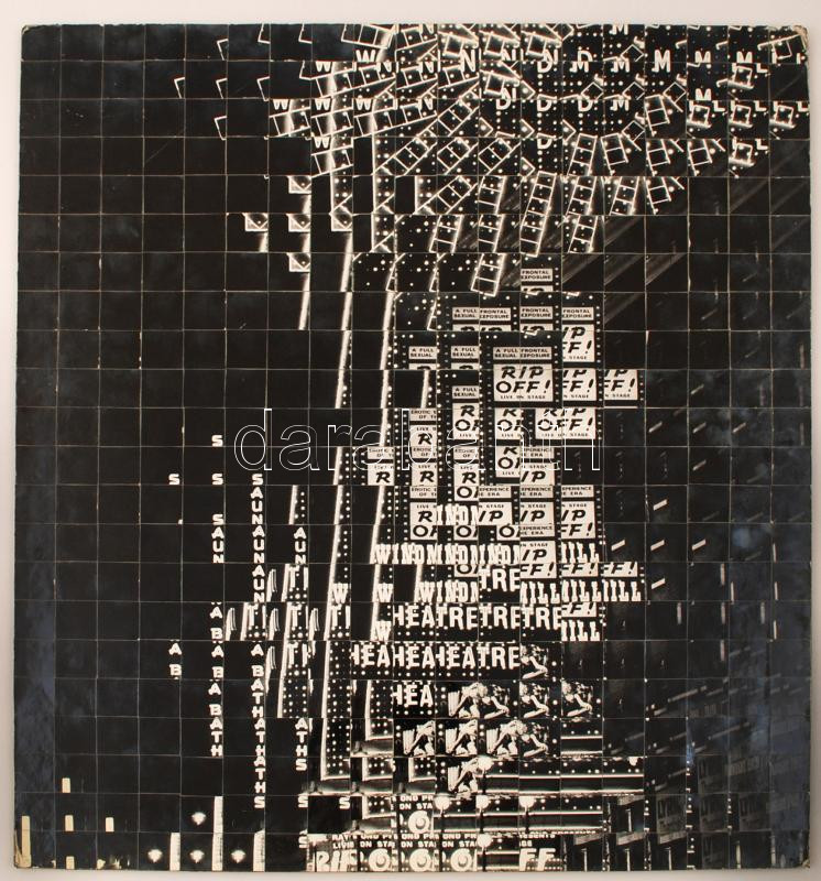 cca 1975 Perényi István: Soho, feliratozott, vintage fotóművészeti alkotás, nagyméretű mozaik-fotómontázs, 66x57 cm