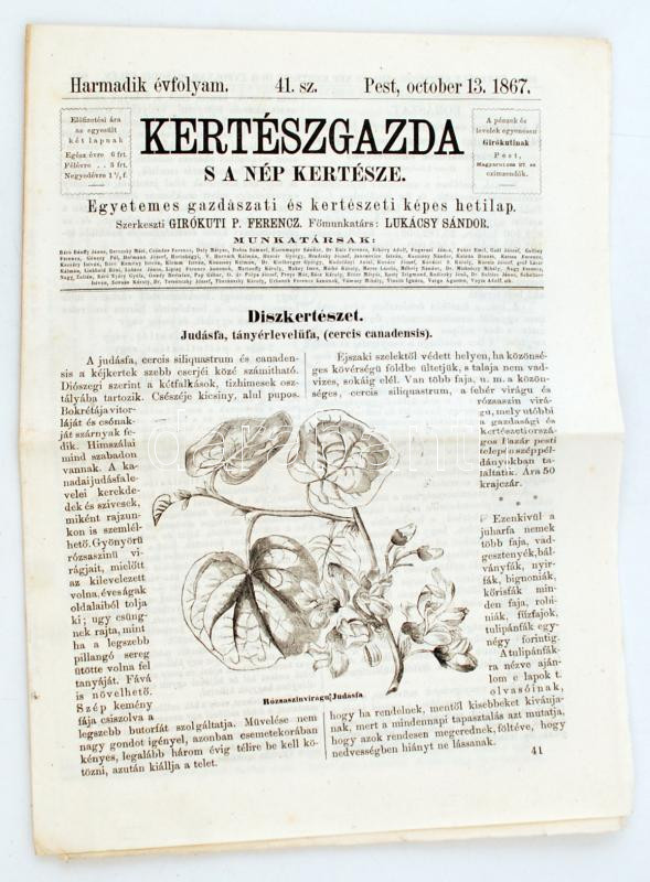 1867 Kertészgazda s a nép kertésze, egyetemes gazdászati és kertészeti... https://www.darabanth.com/en/262-Online-auction/262.0/Other-collectibles/Printed-Materials~20/1867-Kerteszgazda-s-a-nep-kertesze-egyetemes-gazdaszati-es-kerteszeti-kepes-hetilap-Szerk~II1258091