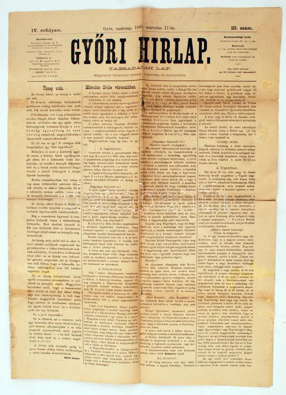 1889 a Győri Hírlap 4. évf. 23. lapszáma (márc. 17.), benne számos érd...