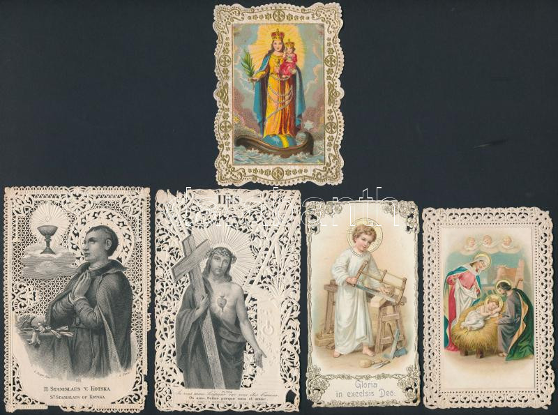 1906 Csipkés rézmetszetű és litho szentképek, szép állapotban, 5 db