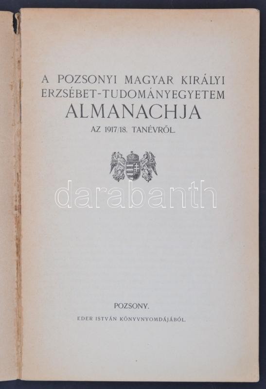 https://www.darabanth.com/en/262-Online-auction/262.0/Other-collectibles/Printed-Materials~20/1918-A-Pozsonyi-Magyar-Kiralyi-Erzsebet-Tudomanyegyetem-almanachja-az-1917618-tanevrol-Pozson~II1252625